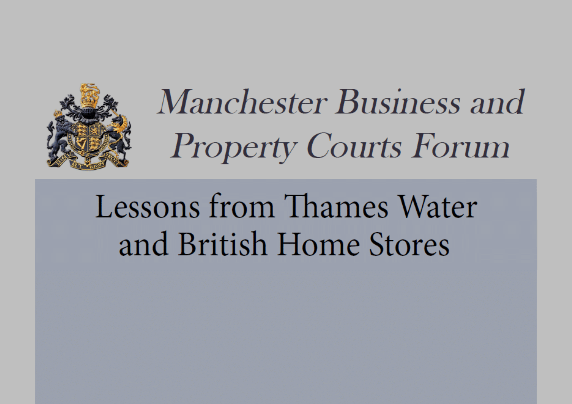 Manchester Business and Property Courts Forum: Lessons from Thames Water and British Home Stores